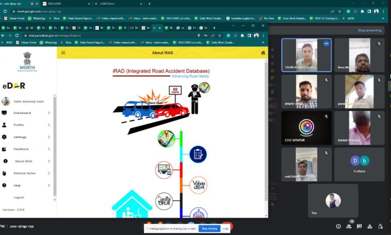 केंद्रीय सड़क परिवहन एवं राजमार्ग मंत्रालय ने राष्ट्रीय सूचना केंद्र (NIC) तथा IIT मद्रास के सहयोग से iRAD (एकीकृत सड़क दुर्घटना डाटाबेस) मोबाइल ऐप और वेब एप्लीकेशन तैयार किया हैजिसकाप्रशिक्षण(स्वास्थ्य विभाग) दिया गया,