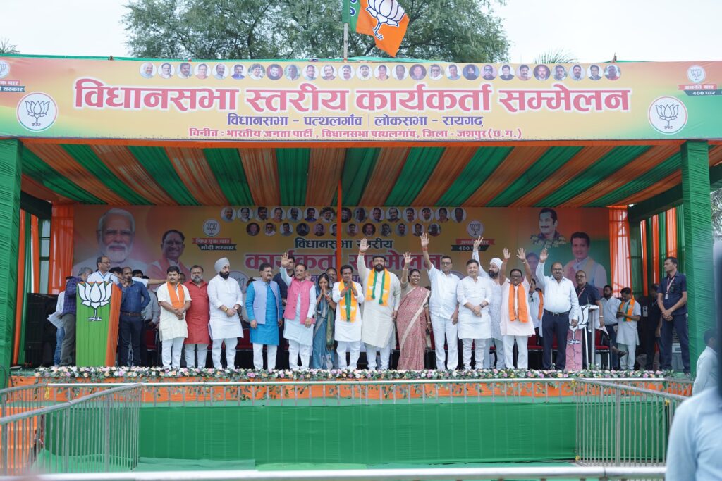 पत्थलगांव – पत्थलगांव में विधानसभा स्तरीय कार्यकर्ता सम्मेलन का आयोजन किया गया जिसमें मुख्य अतिथि के रूप में प्रदेश के मुख्यमंत्री विष्णुदेव साय शामिल हुए।