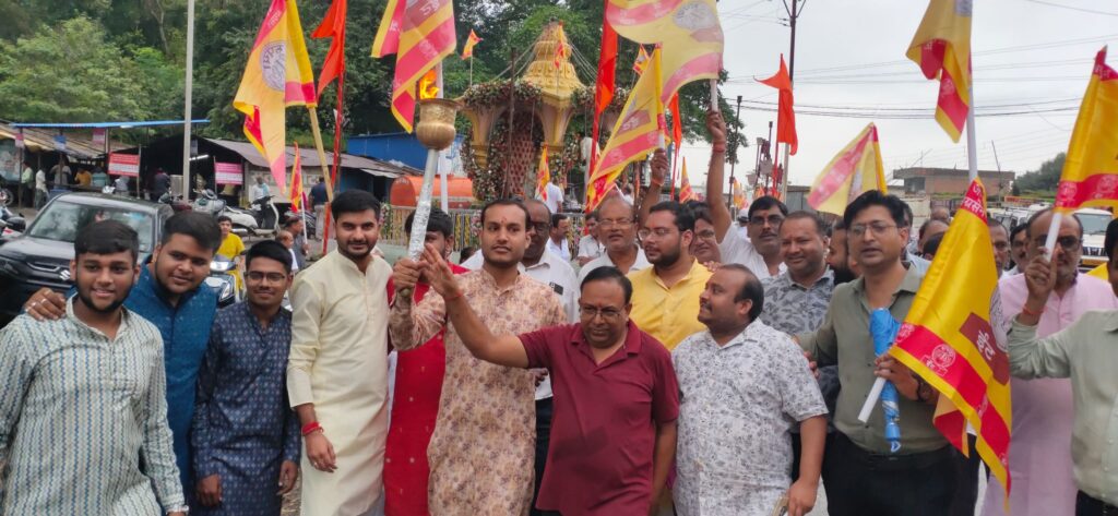 बारिश में भी बना रहा उत्साह, भगवान अग्रसेन की आरती कर लाल ध्वज के साथ निकली शोभायात्रात